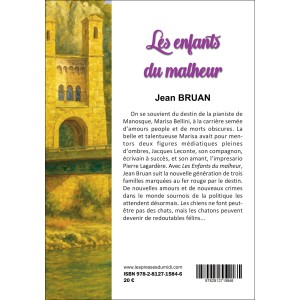 On se souvient du destin de la pianiste de Manosque, Marisa Bellini, à la carrière semée d’amours people et de morts obscures. La belle et talentueuse Marisa avait pour mentors deux figures médiatiques pleines d’ombres, Jacques Leconte, son compagnon, écrivain à succès, et son amant, l’impresario Pierre Lagardère. Avec Les Enfants du malheur, Jean Bruan suit la nouvelle génération de trois familles marquées au fer rouge par le destin. De nouvelles amours et de nouveaux crimes dans le monde sournois de la politique les attendent désormais. Les chiens ne font peut-être pas des chats, mais les chatons peuvent devenir de redoutables félins...