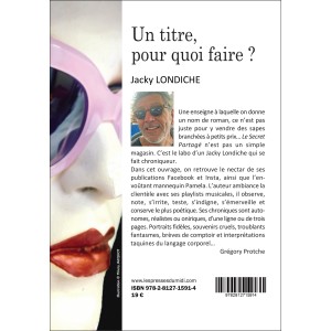 Dans cet ouvrage, on retrouve le nectar de ses publications Facebook et Insta, ainsi que l’envoûtant mannequin Pamela. L’auteur ambiance la clientèle avec ses playlists musicales, il observe, note, s’irrite, teste, s’indigne, s’émerveille et conserve le plus poétique. Ses chroniques sont autonomes, réalistes ou oniriques, d’une ligne ou de trois pages. Portraits fidèles, souvenirs cruels, troublants fantasmes, brèves de comptoir et interprétations taquines du langage corporel…